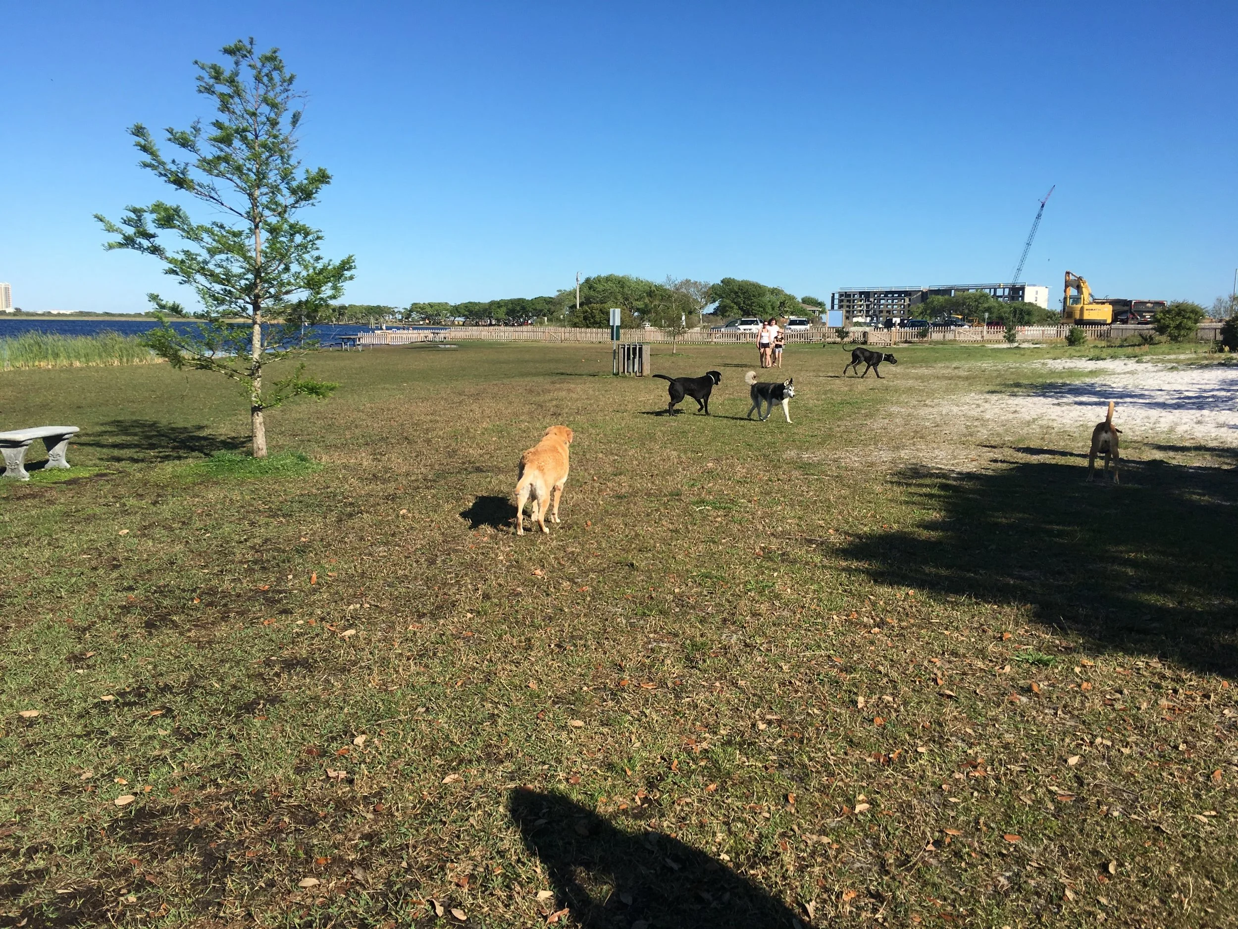 The Dog Pond is a Gulf State Park that was built for dogs (and people :) of all sizes. They have two different fenced areas: one for large dogs and another fenced area for small dogs. Both dog areas are fenced and back up to the lagoon/pond for dogs to swim and cool off.